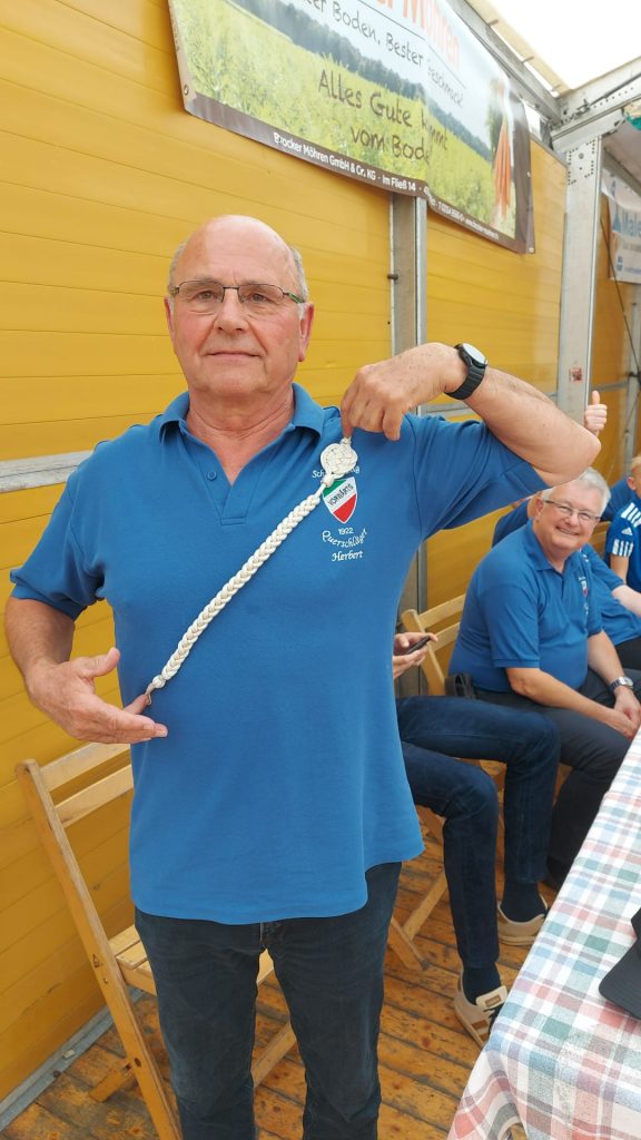 Am Montagmorgen trafen wir uns im Festzelt. Unser Schützenbruder und Feldwebel Herbert hatte allen Grund zur Freude. Beim ASV Pokal und Schnüreschießen konnte er sich die silberne Schnur in der Seniorenklasse sichern.