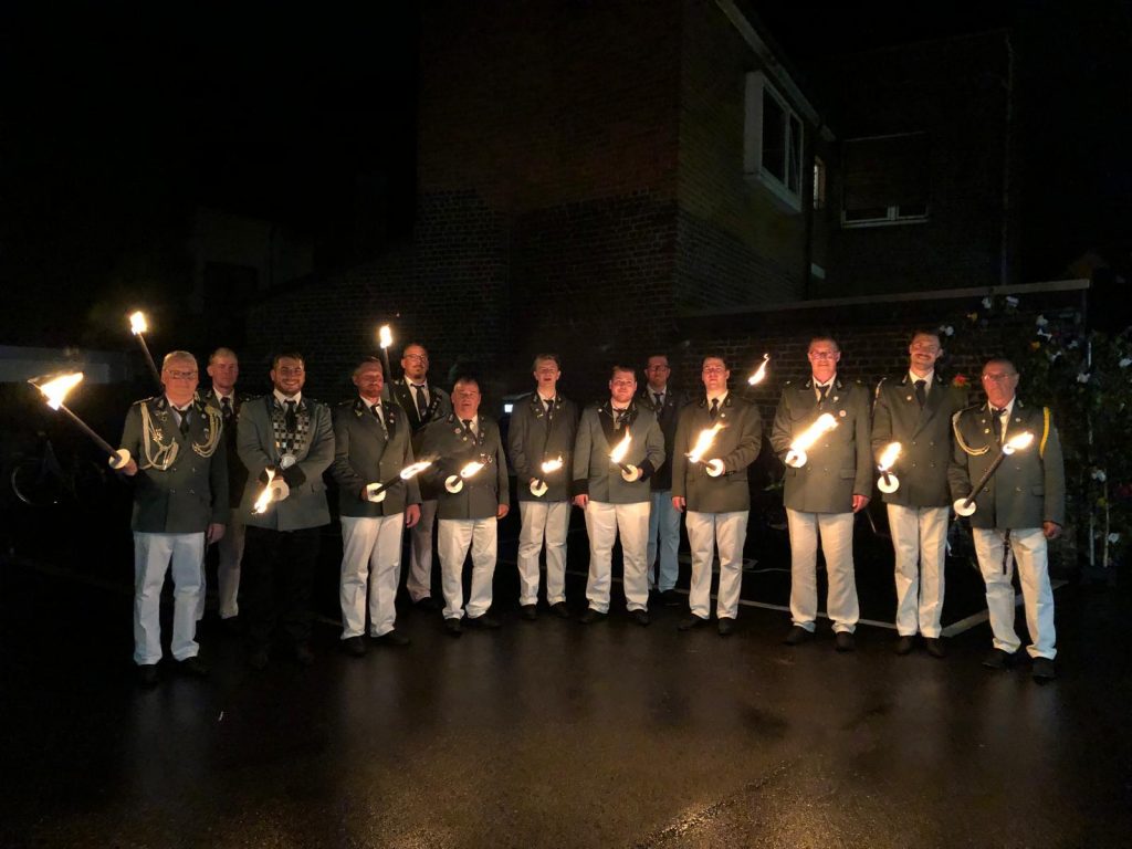 Auch zur späteren Stunde waren wir dann nochmals im Einsatz. Wir hatten die ehrenhafte Aufgabe, unseren Schützenkönig Volker I. und seine König Carla I. mit Fackelgeleit zurück zu ihrer Königsresidenz zu begleiten.