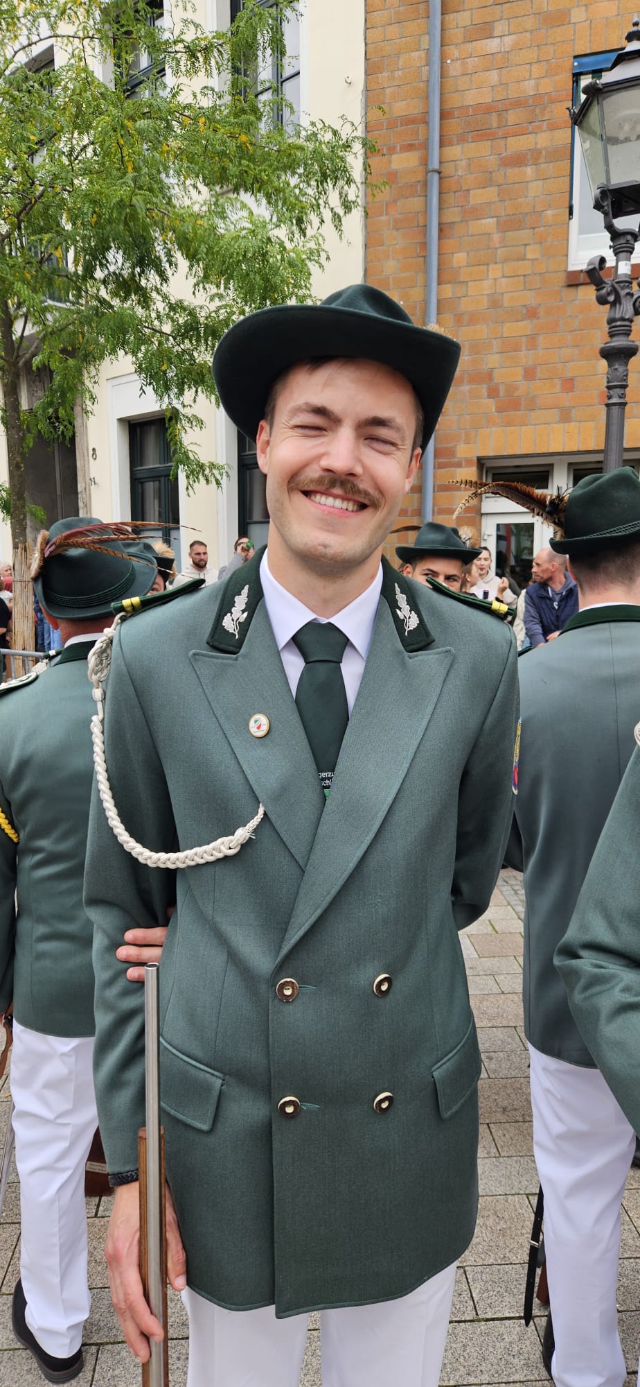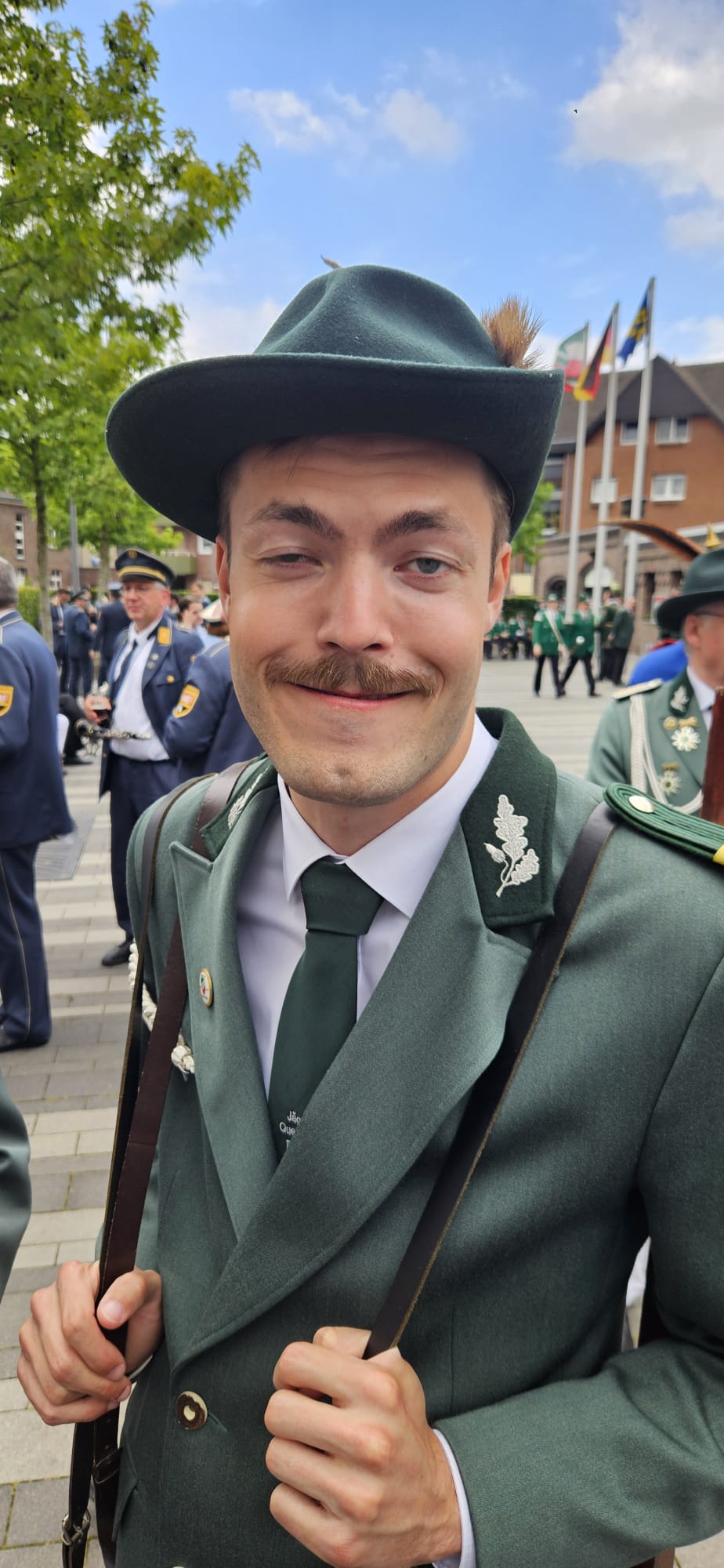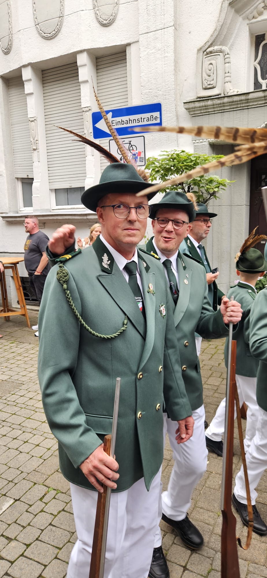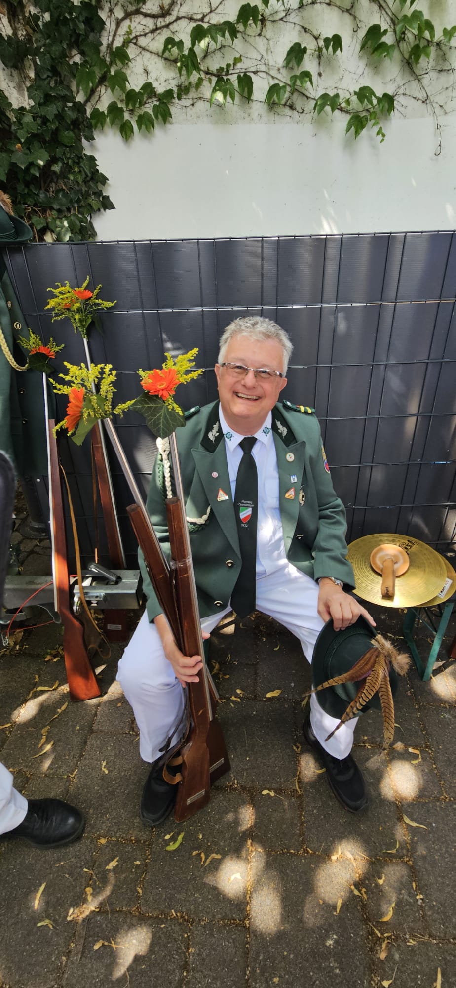 Quelle: meinkleinesatelier Am Sonntag /Montag durften wir dann auch endlich unser Blumenhorn mit, hier auf dem Bild ist unser neuer Schützenbruder Stefan neben Zugführer Rainer zu sehen.