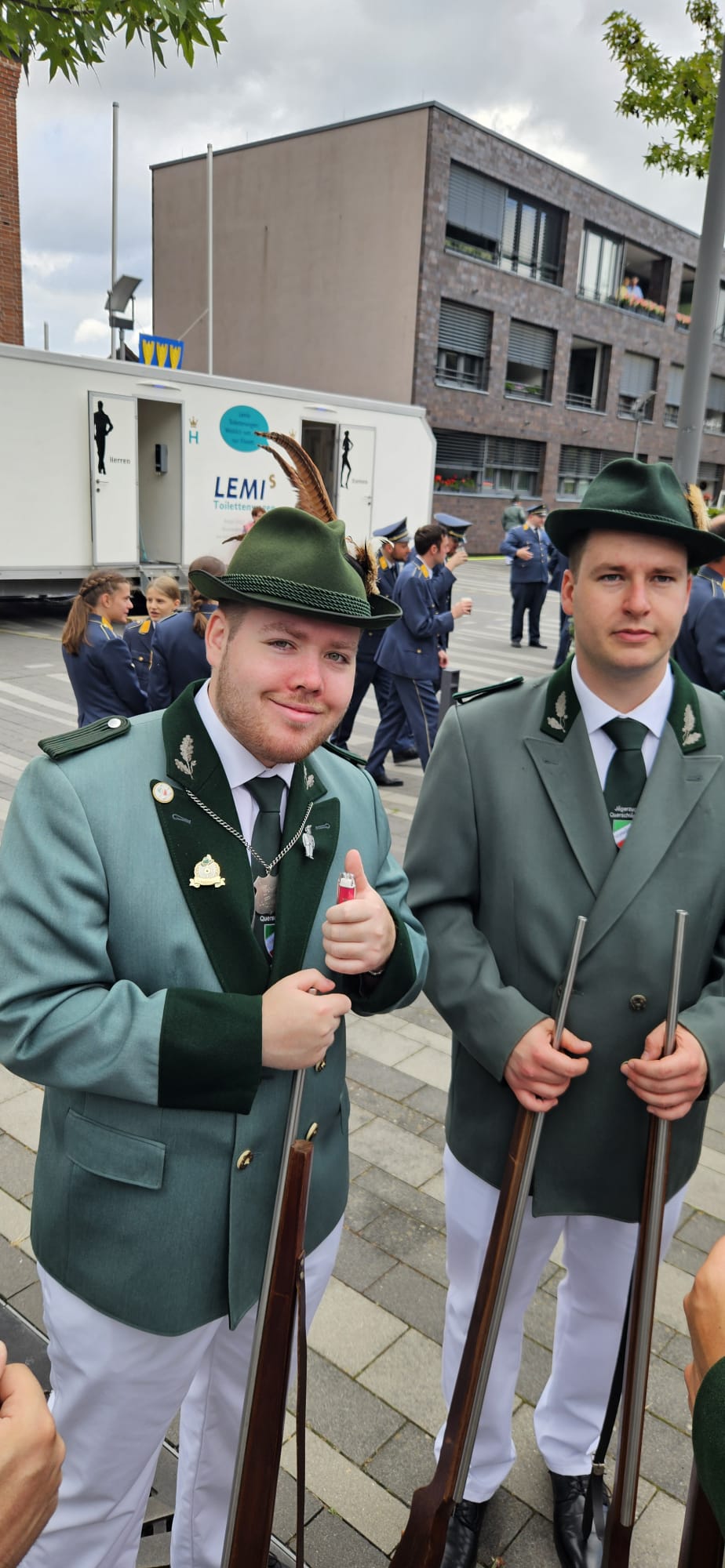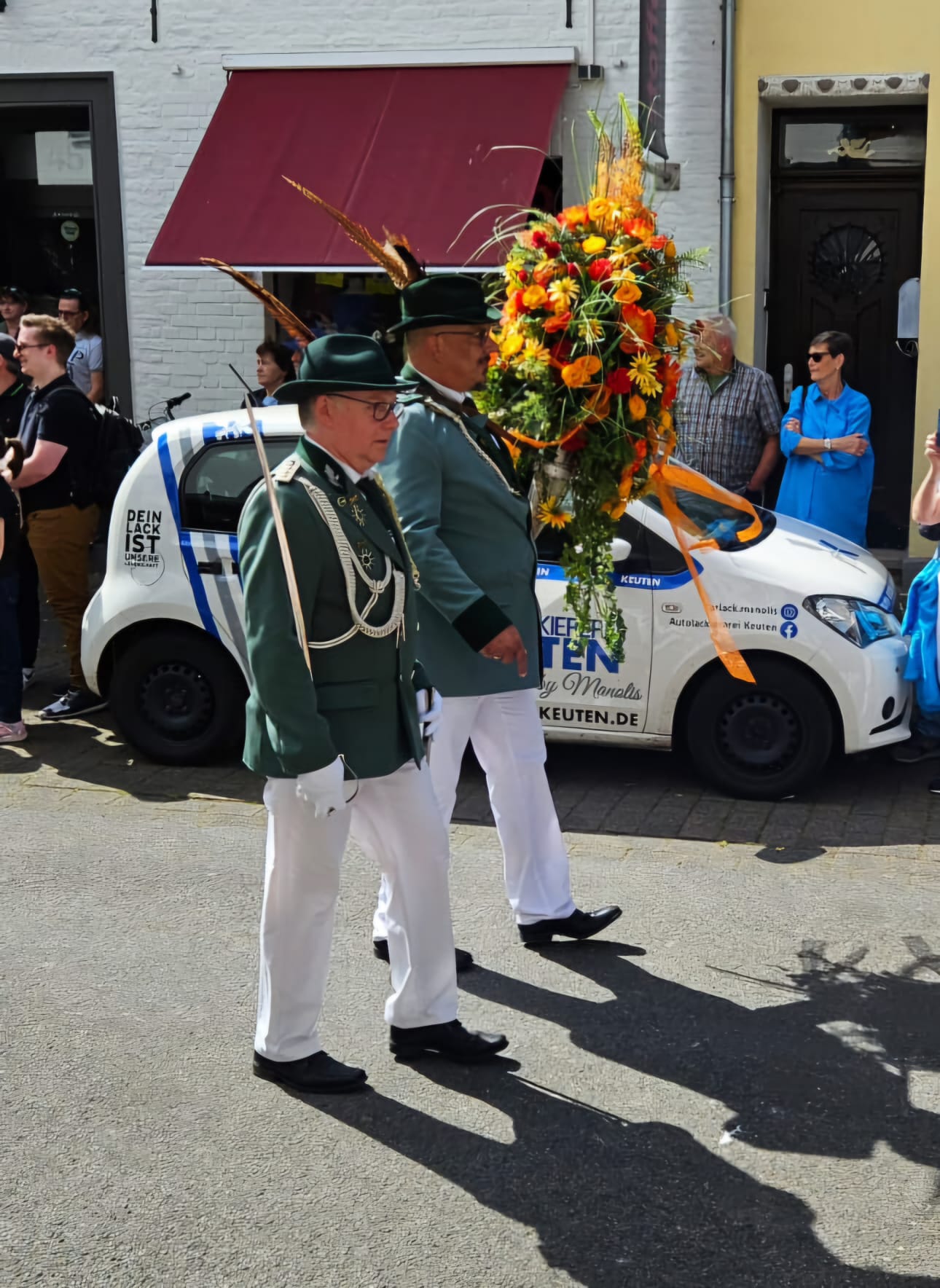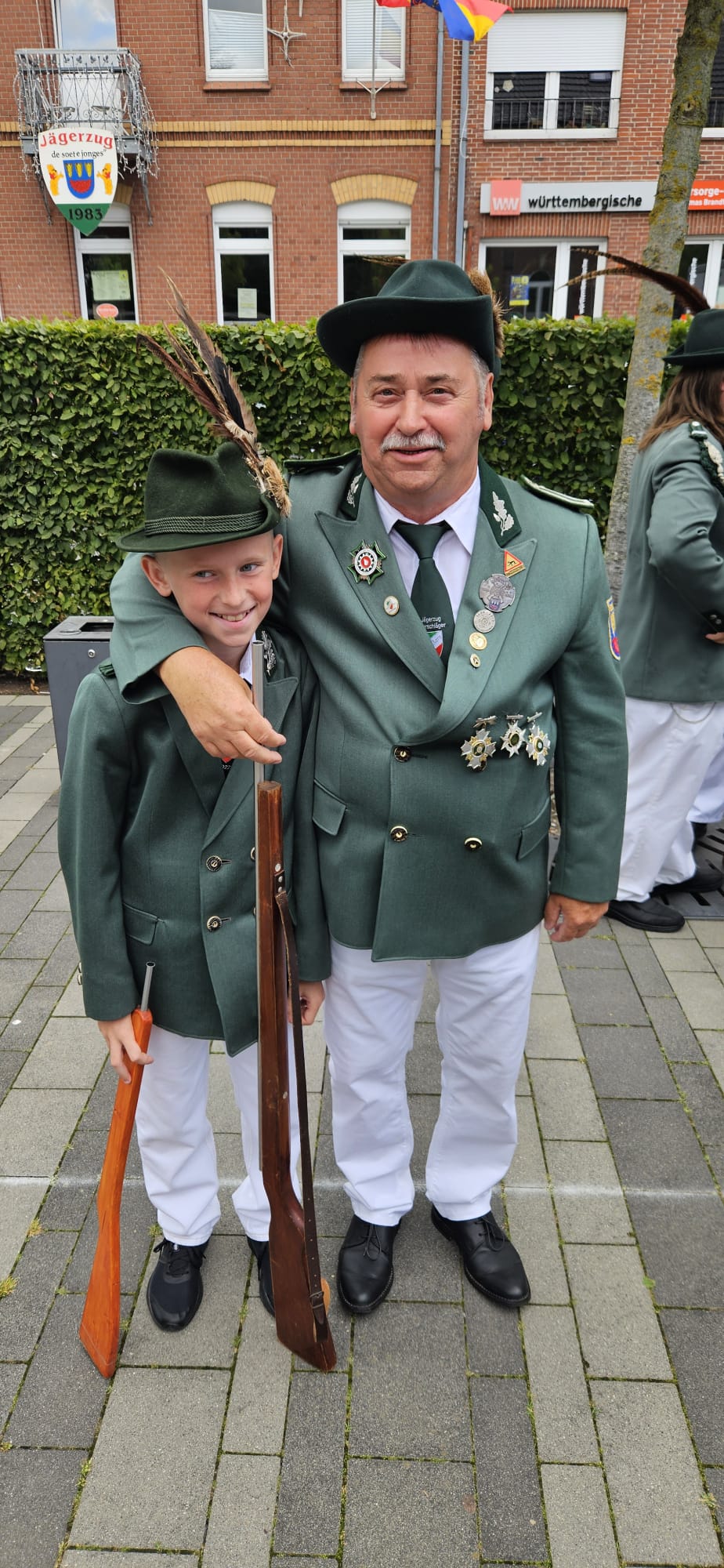 Quelle: meinkleinesatelier Am Sonntag /Montag durften wir dann auch endlich unser Blumenhorn mit, hier auf dem Bild ist unser neuer Schützenbruder Stefan neben Zugführer Rainer zu sehen.