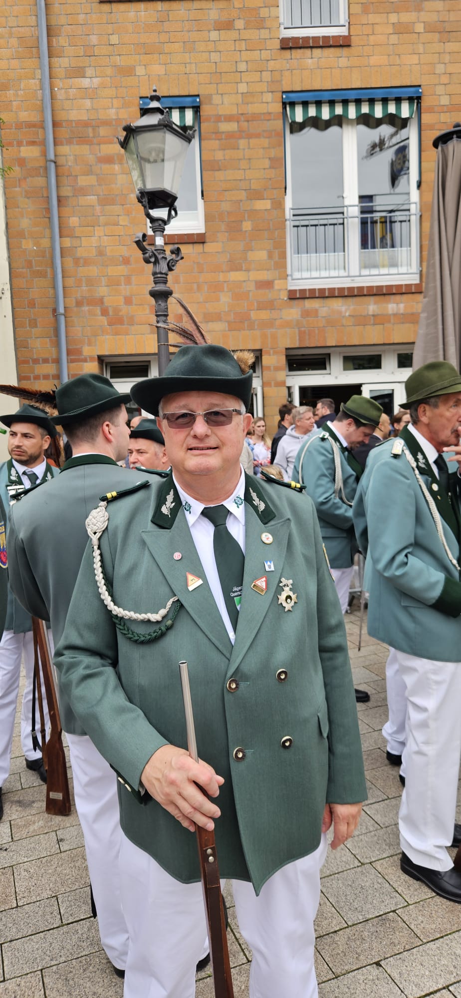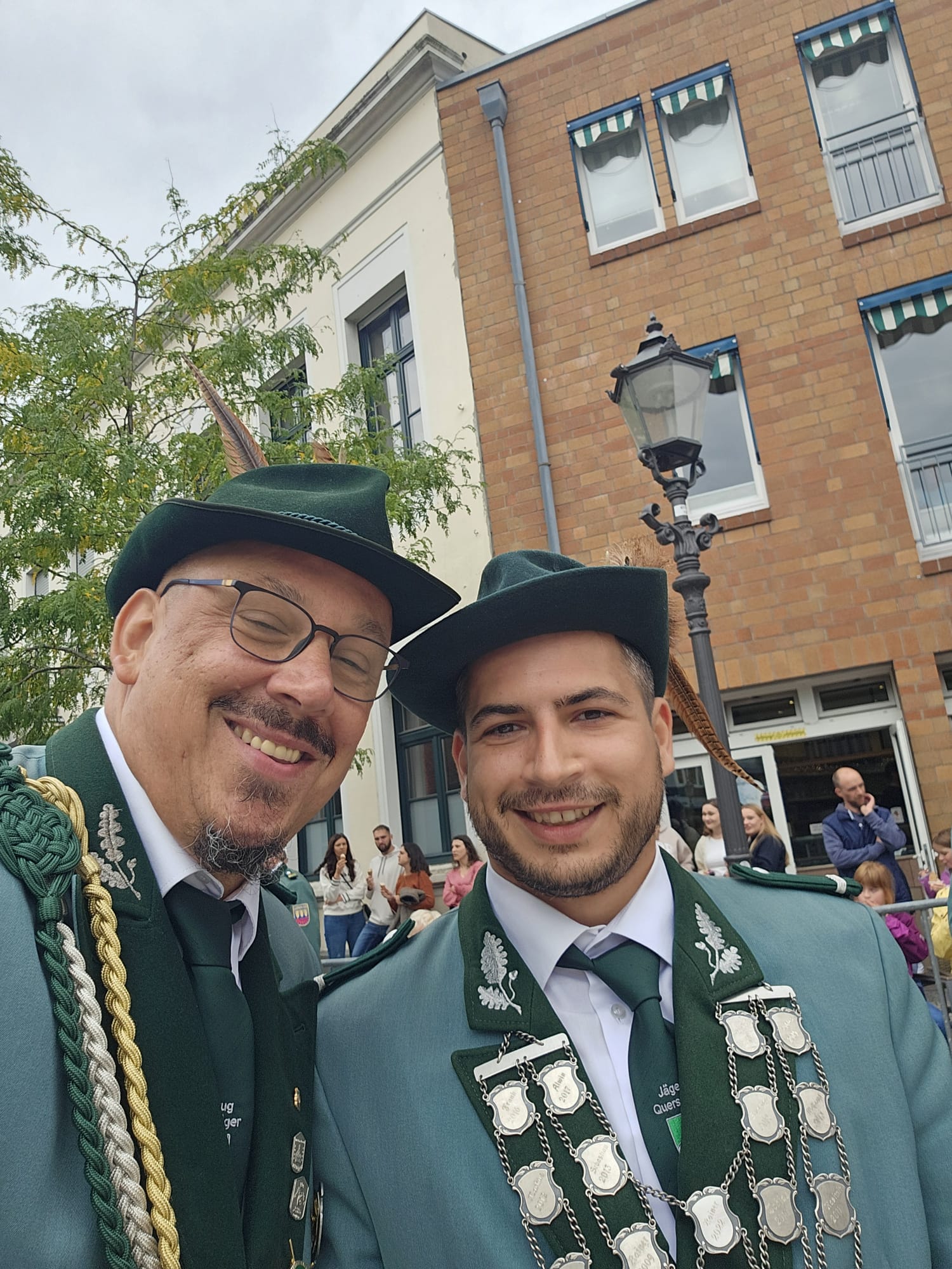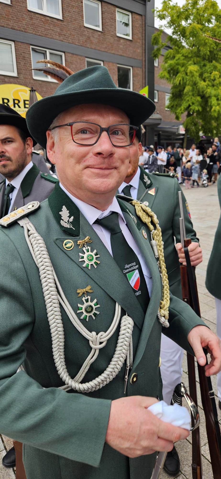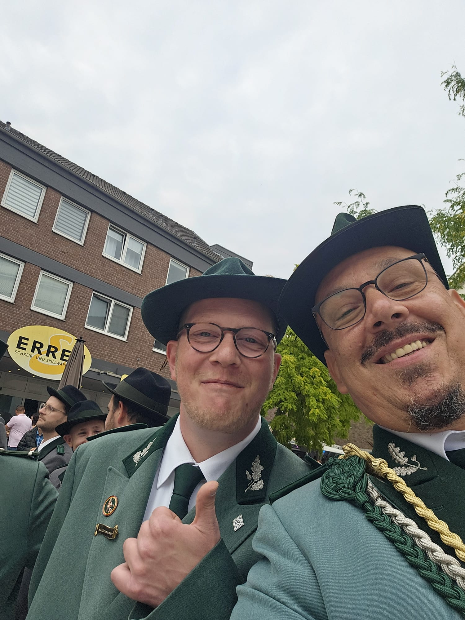 Quelle: meinkleinesatelier Am Sonntag /Montag durften wir dann auch endlich unser Blumenhorn mit, hier auf dem Bild ist unser neuer Schützenbruder Stefan neben Zugführer Rainer zu sehen.