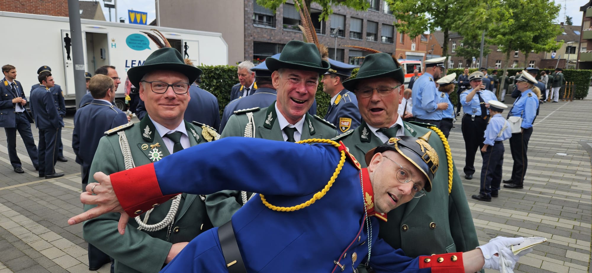 Ab Samstag ging es dann richtig los. Getroffen wurde sich wieder im Wachlokal, wo es sich unserer Zugführer Rainer natürlich nicht nehmen hat lassen, einige Ehrungen und Beförderungen durch zu führen. Anschließend machten wir uns auf in Richtung Kaiserplatz, es stand der erste Festumzug und natürlich die erste Parade auf dem Programm.