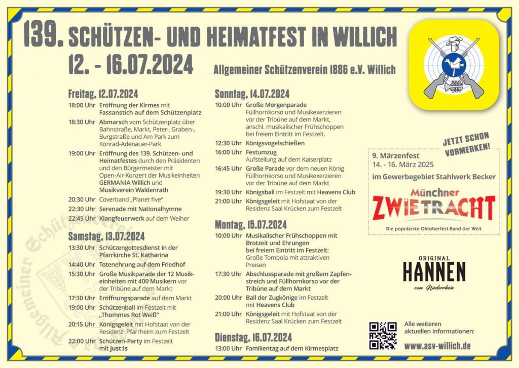 Am zweiten Wochenende im Sommermonat Juli, findet hier in Alt-Willich das Schützen- und Heimatfest des Allgemeinen Schützenverein 1886 Willich e.V. statt. Hier haben wir euch paar Informationen zur Veranstaltung vorbereitet: