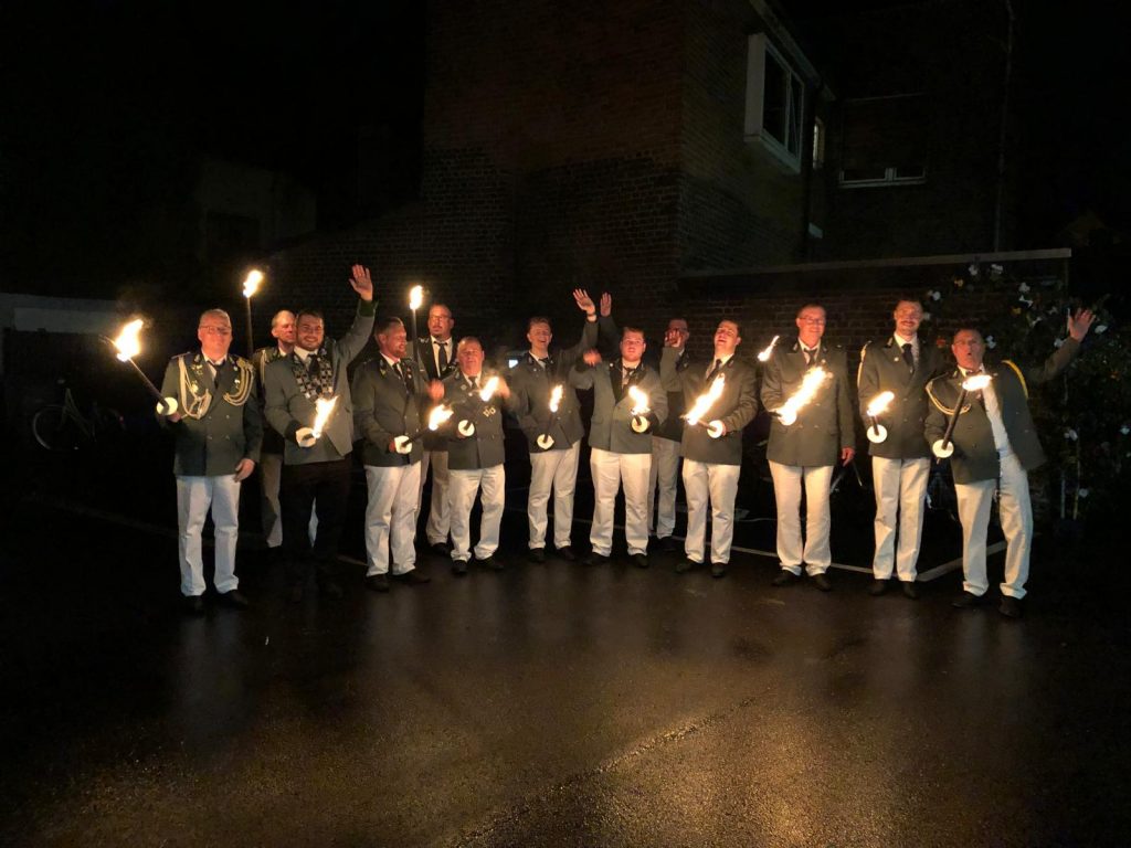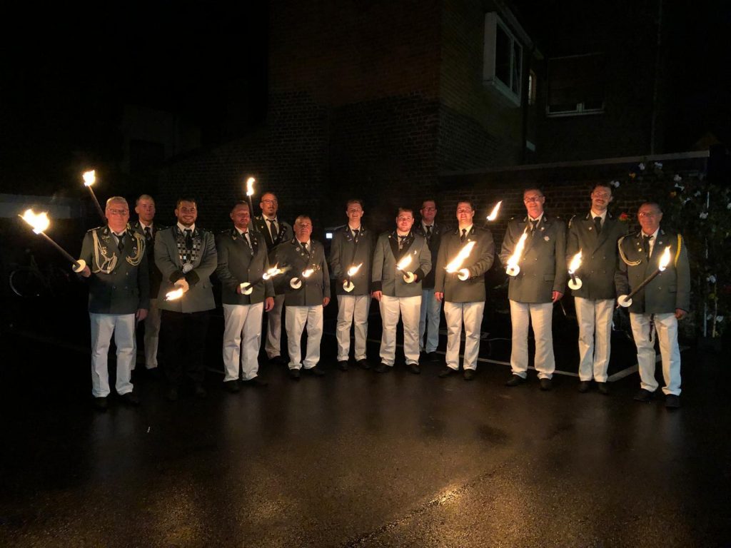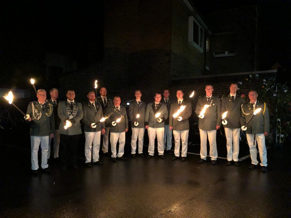 Nach hartem Kampf, war es der Schützenbruder Erwin Peerebooms welcher den Vogel von der Stange holte. Was wäre ein König ohne seine Schuhputzer? Es sind die Schützen Sebastian Buchholz und Robert Naus, die ihren König mit Schuhcreme und Bürste an den Schützenfesttagen in ihrer Funktion als Schuhputzer (Minister) zur Seite stehen dürfen. Seit 2016 es bei uns auch guter Brauch, dass die Damen des Zuges auf den Sterz des Vogels schießen dürfen. In diesem Jahr es Schützenschwester und Frau unserer neuen Schützenbruder Nadja Klier gewesen, die sich den Sterz sichern konnte, und somit unsere diesjährige Schwanzkönig. Auch in diesem Jahr wurde nach alter Tradition auf die Flügel des Vogels geschossen, Rainer Naus (rechter Flügel) und Herbert Waskan (linker Flügel) holten sich jeweils einen Flügel.